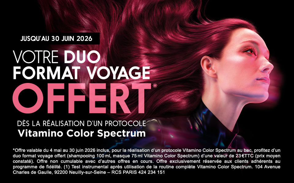 Vitamino Color Spectrum : une couleur intense jusqu’à 100 jours !* <BR> Jusqu’au 30 juin 2026, dès la réalisation d’un protocole Vitamino Color Spectrum dans votre salon Fabio Salsa, votre duo format voyage est offert**.   Et si votre couleur gardait l’éclat du premier jour ? Avec Vitamino Color Spectrum, la technologie professionnelle signée L’Oréal Professionnel, […]